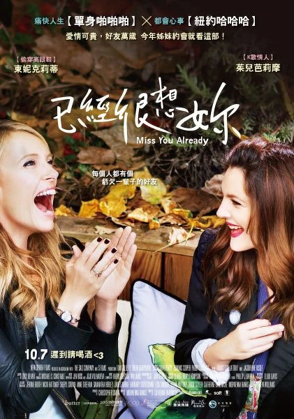 刻劃都會女子友誼的電影《已經很想妳》(Miss You Already),由茱兒芭莉摩與東妮克莉蒂分別詮釋一對古靈精怪與強勢能幹的超級好姊妹,潔絲和米莉是形影不離的死黨,她們跟彼此分享一切,秘密、衣服,愛情…。電影展現當代都會女性生活的不同面貌,以及當面對人生巨變時友情的可貴,看她們如何走過人生各種困境與挑戰,有時候,妳需要的只是姊妹的陪伴。