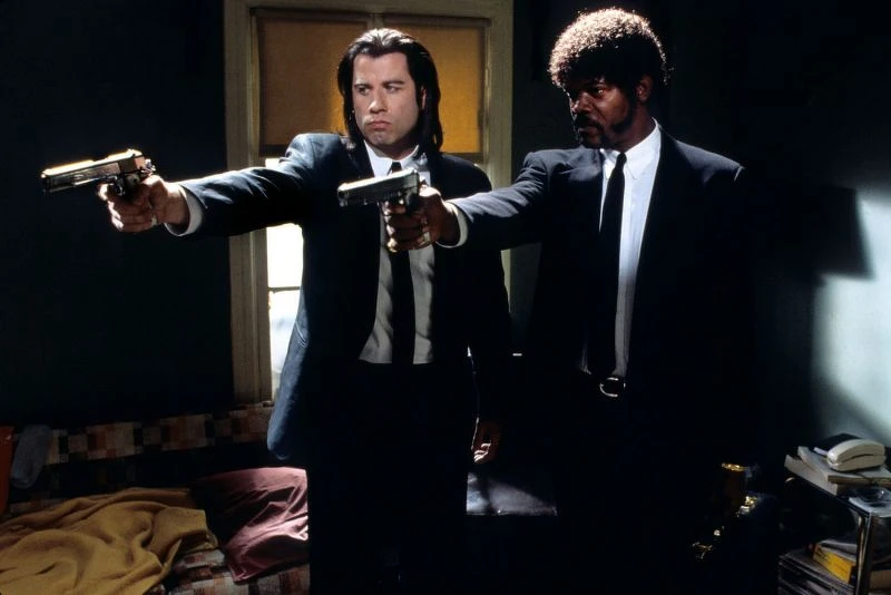 影史評價最高的黑道暴力片無疑就是《黑色追緝令》。這部昆汀塔倫提諾在1994年執導的風格電影,當初橫掃坎城、獨立精神、金球、金像獎等各大影展獎縣,並提名七項奧斯卡,被譽為最重要的黑色幽默電影。電影裡約翰屈伏塔飾演的文生和山繆傑克森飾演的朱爾,可以說是史上最帥的雙人組合。黑道老大手下這對殺手,西裝筆挺、作風犀利、行事俐落,兩人從執行任務開始就不斷對話談論,少了伍迪艾倫電影裡的喋喋不休,多的是昆汀獨有的微妙幽默感和思想衝擊。對比兩人在大開殺戒的冷靜和聖經加持,造就激烈的反差,激發出不可思議的火花。兩個殘酷但冷靜的殺手,即使在大難不死的槍戰、黑道老大追殺拳擊手的行動,以及其他無關聯的事件中,總要將人性談論一番。片中兩人同時舉槍的畫面也成為影史經典,最令人印象深刻的殺手組合,舍他們其誰?