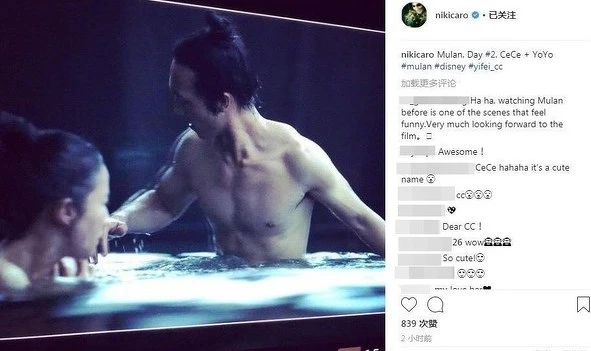 早先,除了劉亦菲自己在社群媒體上發出花木蘭定裝照外,影片導演Niki Caro更手滑發出了現場拍攝的照片,一景可以看出是花木蘭潛入軍營代父從軍,與男主角共浴的場景。