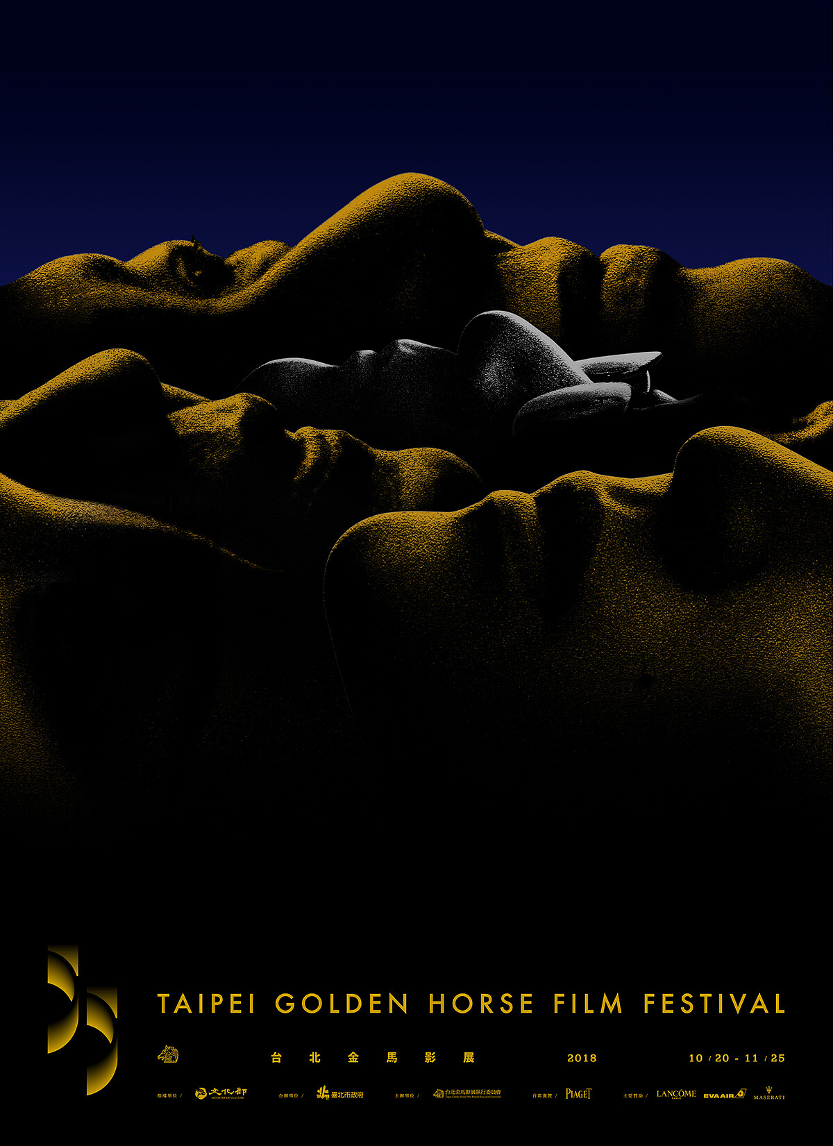 今年的金馬55主視覺以「配角」做為概念,因為「相對於電影,人人都是配角」,四張極為特寫的側臉,巧妙安排像是夜裡起伏的沙丘。「對我來說,尋找那顆星星的過程,像是走在夜晚無盡綿延的沙漠裡,有時候不知道繞了多少路,沒有直線或捷徑。微光中,量感與距離的訊息其實是來自影子。這張主視覺的側臉其實是四位金馬重要的角色──李安(台北金馬影展執委會主席)、侯孝賢(金馬電影學院院長)、鞏俐(金馬獎評審團主席)、小野(金馬創投會議評審)。勾邊的光在他們的輪廓線上,但在畫面中的大部分是黑色的,大多數都是影子,我們想用這樣的手法來象徵幕後團隊。」