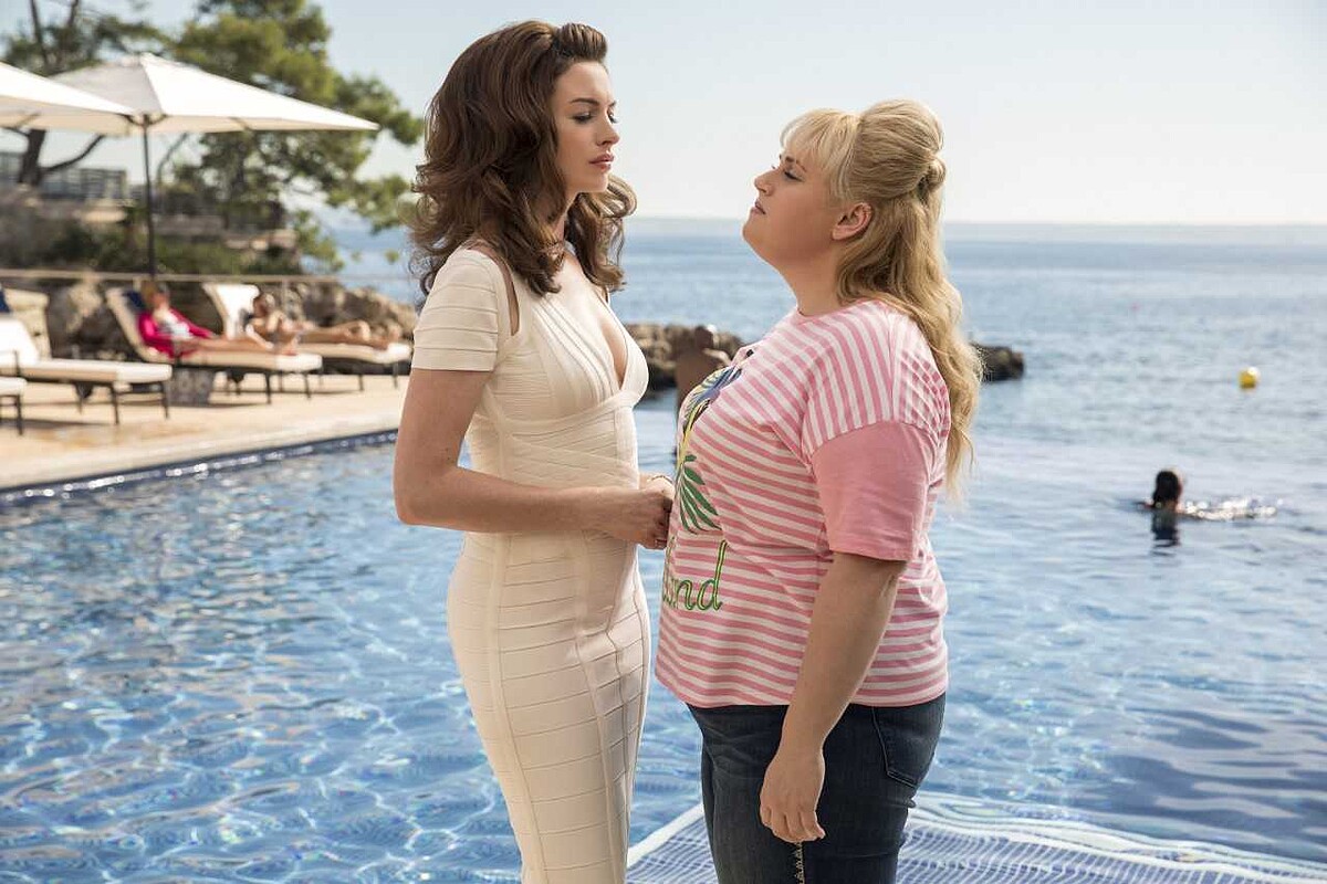 《詐騙女神The Hustle》是翻拍1988年的喜劇《騙徒糗事多Dirty Rotten Scoundrels》,由史提夫馬丁和米高肯恩演出,不過新版的兩大主角這回變成了女性,除了找來安海瑟薇之外,還有「胖艾美」瑞貝爾威爾森Rebel Wilson,兩大最會搞笑的又不計形象的天后相遇,一位走庶民路線,另一位專釣富豪,彼此聯手耍騙全世界的壞男人。
