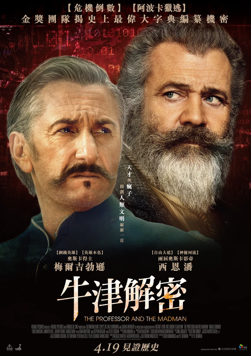 許多人讀過《牛津字典》,卻可能不知道在字典的籌備過程當中,竟有一位遭到終身監禁的瘋狂天才醫生加入編纂行列!改編真人真事、揭露英國政府封鎖上百年機密檔案的《牛津解密》(The Professor and the Madman),網羅懸疑、謀殺、背叛、愛情等類型元素,譜出引人入勝、令人難忘的傳奇故事《牛津解密》,劇中的兩位偉大男性,藉由難能可貴的情誼,排除萬難,共同登上文明史上的學術巔峰。