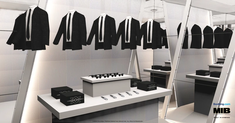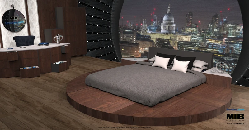 Booking.com重現電影中的倫敦總部基地,獨家推出可提供2人住宿的「MIB 星際戰警住宿」。內部空間忠實呈現總部的原型與概念,從不起眼的入口走進,便會看到探員報導的純白鏡面客房、大廳與臥底房間。