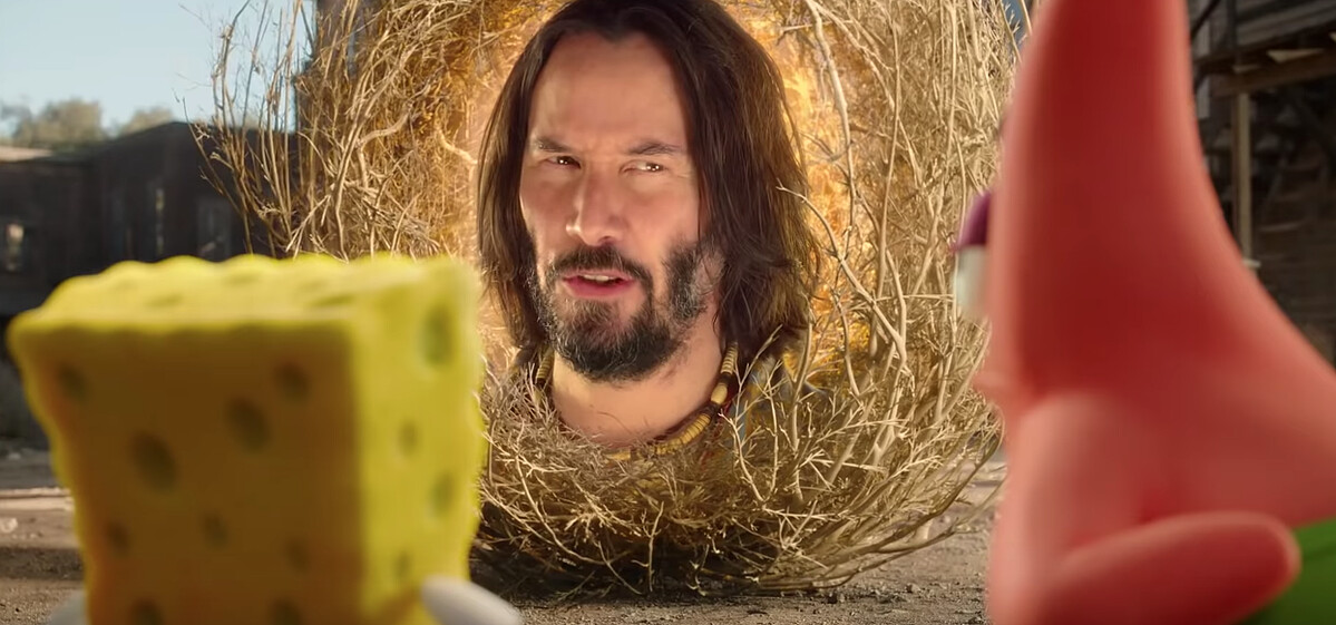 這部動畫喜劇是2015年《海綿寶寶:海陸大出擊》 的續集,沒想到基哥不是以配音身份,反而用真人方式出演,可是令影迷們感到相當驚喜。
