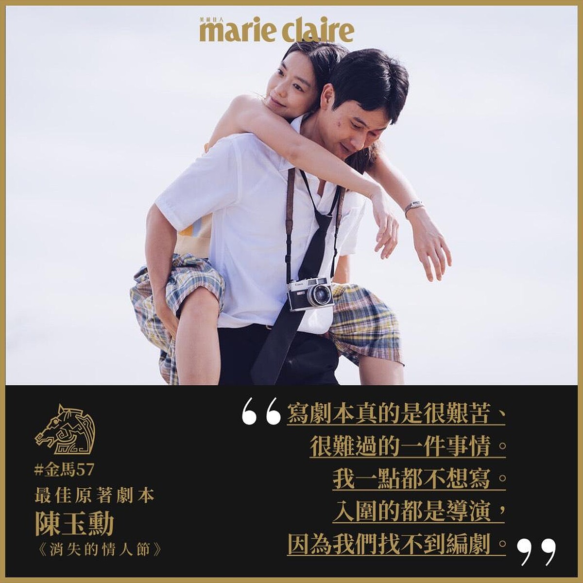 「謝謝評審,謝謝大家,這是我25年來第二個劇本獎,其實也沒寫過幾本就對了。我還記得30年前學校剛畢業,帶著我的畢業製作去找小棣老師。他問我說將來要幹什麼,要做導演還是製片?我不知道他們在做什麼,就隨便亂講說,導演好了。他就跟我講說,那你要有心理準備,導演是艱苦、孤獨、寂寞又漫長的一條路。30年來,沒錯啦,但是你沒跟我講說,寫劇本更孤獨更寂寞。真的,寫劇本真的是很艱苦、很難過的一件事情。我一點都不想寫。剛剛看到的都是導演,因為我們找不到編劇,為什麼找不到編劇?因為我們會折磨編劇,折磨到後來不好意思就只好自己寫,因為我們做導演都很善良啦。非常謝謝大家。本來要講什麼我也忘了,沒料到會得這個獎。非常謝謝。」