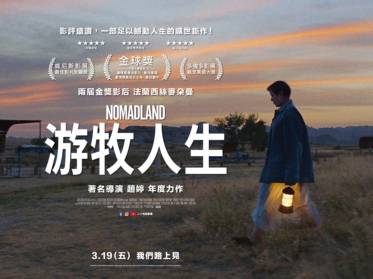 爛番茄滿分開盤,更勇奪威尼斯影展最佳影片金獅獎的《游牧人生》,是一部美國獨立劇情片,共花費六個月的時間跟隨遊牧族橫跨美國七大州實景拍攝,由《意外》兩屆奧斯卡影后法蘭西絲麥朵曼主演,講述一個女人離開自己的小鎮,在美國中西部地區遊歷的故事。