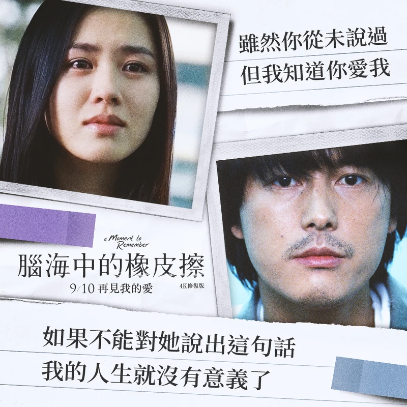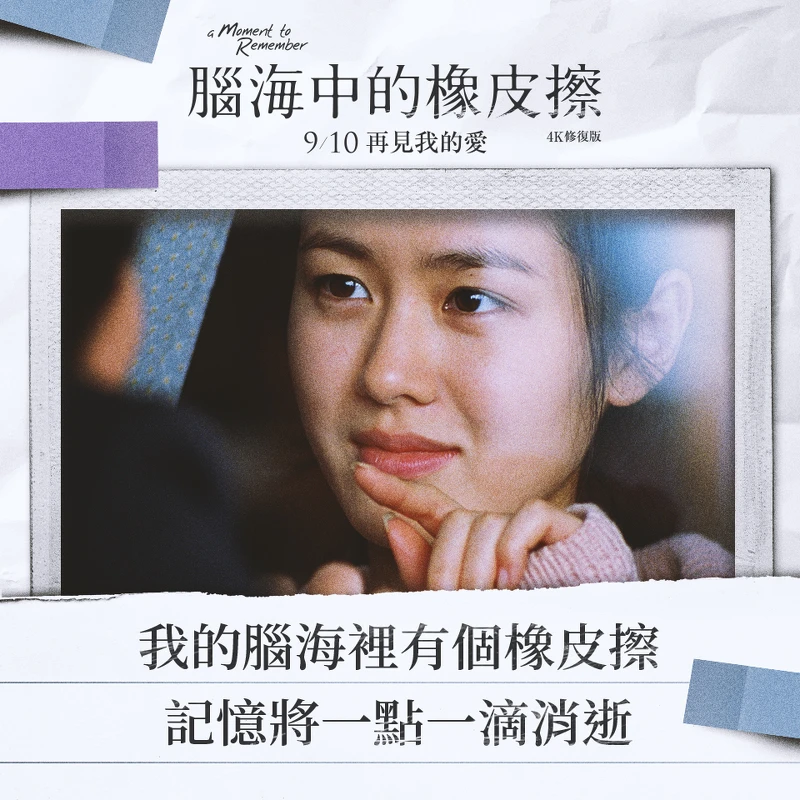 韓國催淚愛情經典《腦海中的橡皮擦》是「國民初戀」孫藝珍與鄭雨盛的初次合作,孫藝珍在片中是個天真單純的千金小姐,意外遇上外表帥氣的建築工人鄭雨盛,即使彼此身份懸殊,孫藝真仍然主動展開各種倒追攻勢,就像在《愛的迫降》世理總是大膽追求真愛,用甜美笑容融化了原本看似冷酷的鄭雨盛。