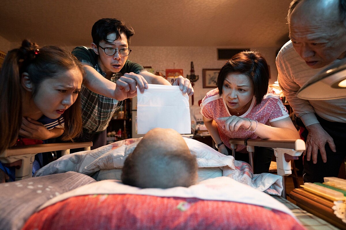 加上當天要移動大體,卻因為電梯過窄,不只床推不進去,連輪椅都會卡住,葬儀社工作人員乾脆從父親大體背後抱著他,大家一起搭電梯下樓,當時李念修心想,如果她父親真的在場,應該會大飆髒話,萬一此時恰巧有人要搭電梯,不知場面會有多荒謬,這個場景也成了故事發想的起點,劇中角色的個性,也是她家人的投射。雖然礙於種種限制,不得不剪掉這場戲,但她笑說,飾演小妹的梁舒涵事後告訴她:「導演,這場戲我一直在憋笑,想說我是誰、我在哪。」