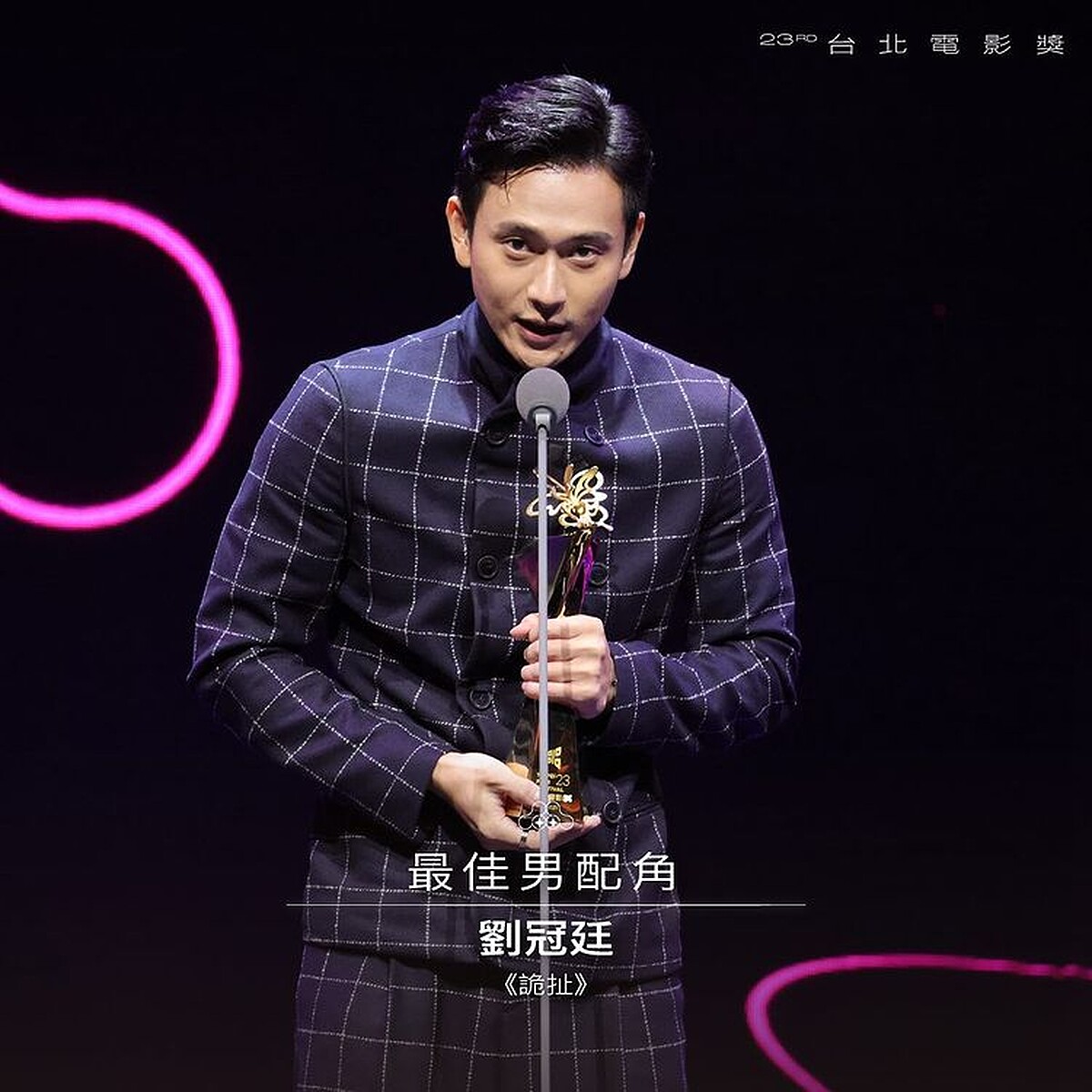 《詭扯》劉冠廷、百白獲頒最佳男配角、最佳女配角,劉冠廷在台上告白女友孫可芳:「我要謝謝小豆孫可芳一直在我身邊陪伴我,從我們還是學生的時候一直到今天,謝謝他,還有謝謝他的家人,他的家人是我看過最有愛的一群人了,他們也給我很多的愛。」