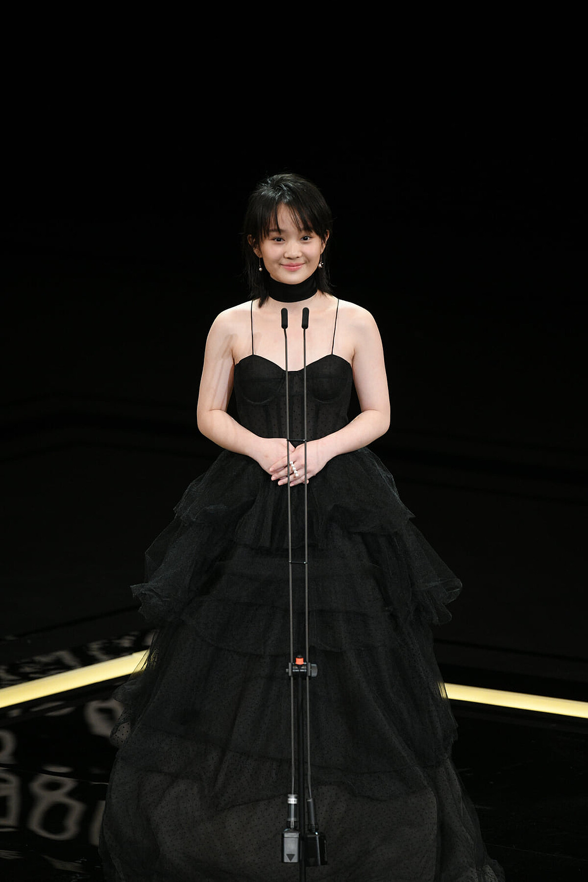 我要先謝謝評審,讓我能站在這裡。我不知道怎麼形容現在的感受,我拍《美國女孩》之前,從來沒想過今天會站在這裡,我想要謝謝製片、導演還有工作人員,讓我有機會演出,謝謝Fiona(阮鳳儀)導演很有耐心的指導我,都很關心我、很照顧我,也要謝謝《美國女孩》Family就是嘉欣媽媽、凱勛爸爸,還有品彤妹妹,現場都讓我很開心的去拍戲,最後也想要謝謝爸爸、媽媽都一直很支持我演戲這條路,謝謝你們,然後就……謝謝。