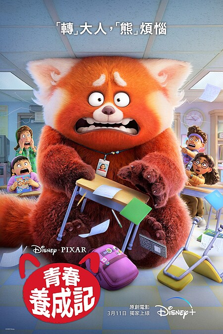 皮克斯全新作品《青春養成記》敘述13歲女孩美美,發現只要自己有強烈情緒起伏時,就會不由自主變身成一隻巨大「紅貓熊」,面對同學、親朋好友都尷尬到無地自容。由《腦筋急轉彎》製作團隊打造、亞裔演員吳珊卓配音,為一部適合闔家共賞的輕鬆動畫電影。