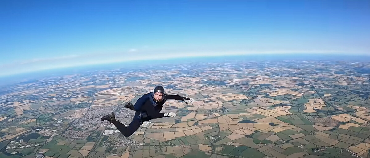 阿湯哥提到定點跳傘最大的挑戰是找到攝影機,除了要靠周全準備也要看天氣,光線和雲層必須剛剛好,有點霧但還看得清,然後把攝影機角度對好,再用無人機確認一切無誤,就可以準備開始。表演這種特技動作,另一件要避免的事就是受重傷或死亡,騎摩托車就夠危險,還要在架高的坡道平台上狂飆,若是掉下坡道就慘了,無法完全脫離摩托車也會被卡住,打不開降落傘就死定了。