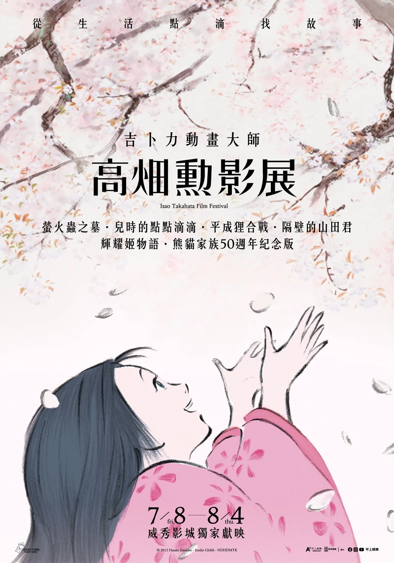 為紀念大師高畑勲,甲上娛樂特別舉辦「高畑勲影展」,內容包含《螢火蟲之墓》、《兒時的點點滴滴》、《平成狸合戰》、《隔壁的山田君》、《輝耀姬物語》以及與宮崎駿聯手企劃製作的《熊貓家族》都將在7/8起於全台威秀影城獨家上映。