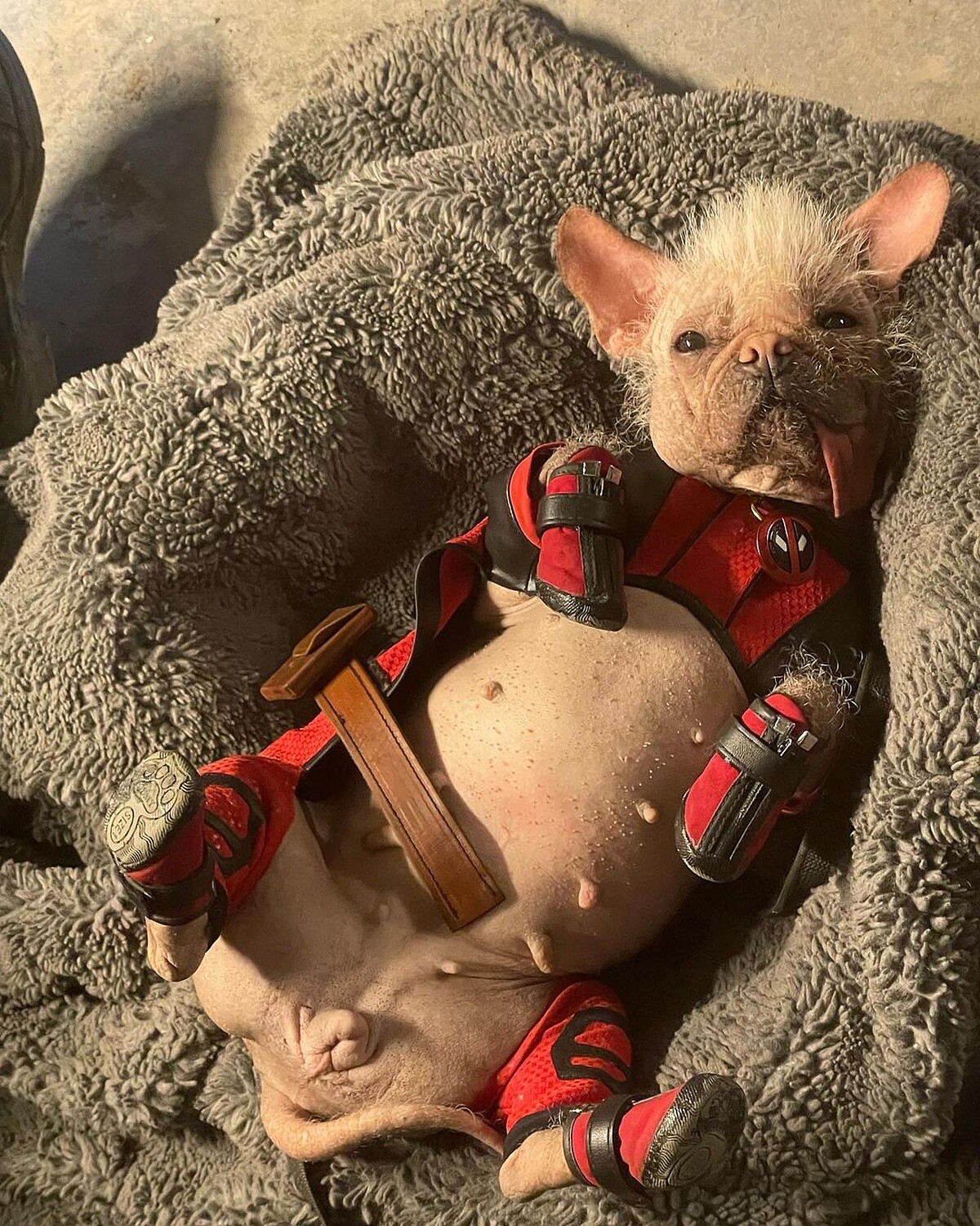 醜到超可愛的「死侍狗Dogpool」在《死侍與金鋼狼》首次登場,也是片中最萌焦點,在漫畫中是死侍動物變體,由名為「佩吉」的中國冠毛犬演出,牠曾在2023年參與「醜狗比賽」獲得「全英國最醜的狗」稱號。