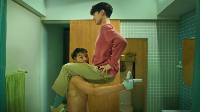 預告也再獻「重鹹畫面」,林柏宏直接正對跨坐在全裸的許光漢肩上,許光漢回憶這場戲說:「這真的是超難度動作,不只是我要承受一些重量,柏宏在上面吊鋼絲也要撐住不能歪倒。」程偉豪則負責從旁下指令:「柏宏再挺直一點,光漢的臉整個埋進去看不到囉。」