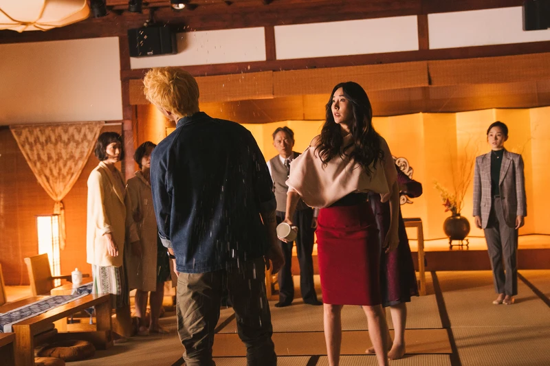 《詐團圓》有一場婚宴戲,「媽媽」隋棠藉由外貌跟七旬老翁上演假結婚真詐財,「兒子」陳昊森就在台下耍牌技騙熟女,台上台下兩人默契十足合作無間,不只表現浮誇好笑還賺人熱淚。