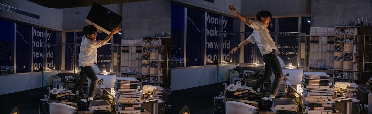 另外,盧廣仲與黃宣在「2022再見版」預告中也大展瘋狂演技,盧廣仲扮演的馬克一個人加班到崩潰,一改聽話認命的社畜面貌,抓狂的狠砸辦公室,將劇組花費千萬打造的『茫您』廣告公司辦公室砸得一團亂,不但用白潻亂噴牆壁,還狂丟電腦,更對鏡頭耍狠,提出上班族內心深處的大哉問:「工作到底是為了什麼?」盧廣仲表示要狂砸千萬打造的辦公室可說是喜憂參半,「難得可以砸碎很貴的電腦,但又覺得萬一沒有砸好,工作人員要幫忙收拾再來一次,內心會不好意思。」所以他努力將電腦螢幕丟出了一條拋物線,讓演出可以一次過關。
