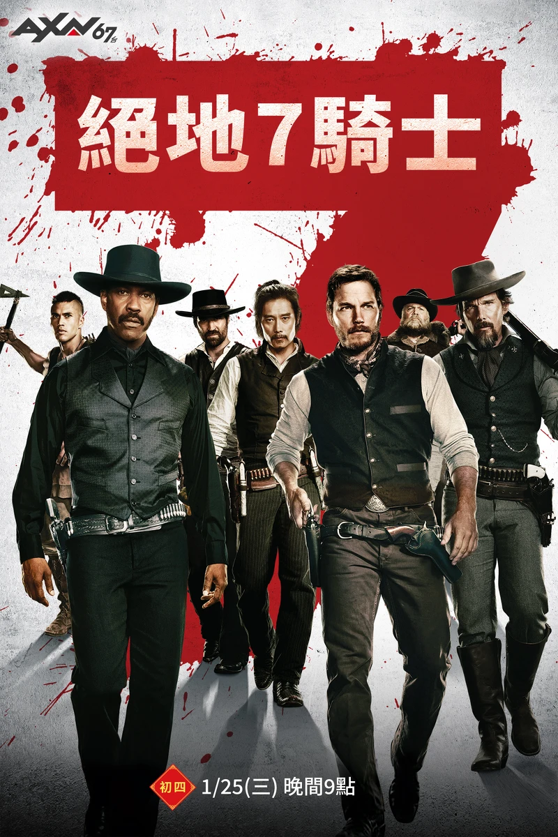 電影《絕地7騎士》由奧斯卡影帝丹佐華盛頓(Denzel Washington),攜手飾演《星際異攻隊》的克里斯普瑞特(Chris Pratt)、韓國影帝李炳憲 (Lee Byung-hun)、飾演「愛在三部曲」系列男主角的伊森霍克(Ethan Hawke)等多位人氣影星實力飆戲,看由神鬼賭客、賞金獵人、、亡命之徒……等各具背景的七人陣容,如何齊心拯救小鎮不受蠻橫企業家迫害。