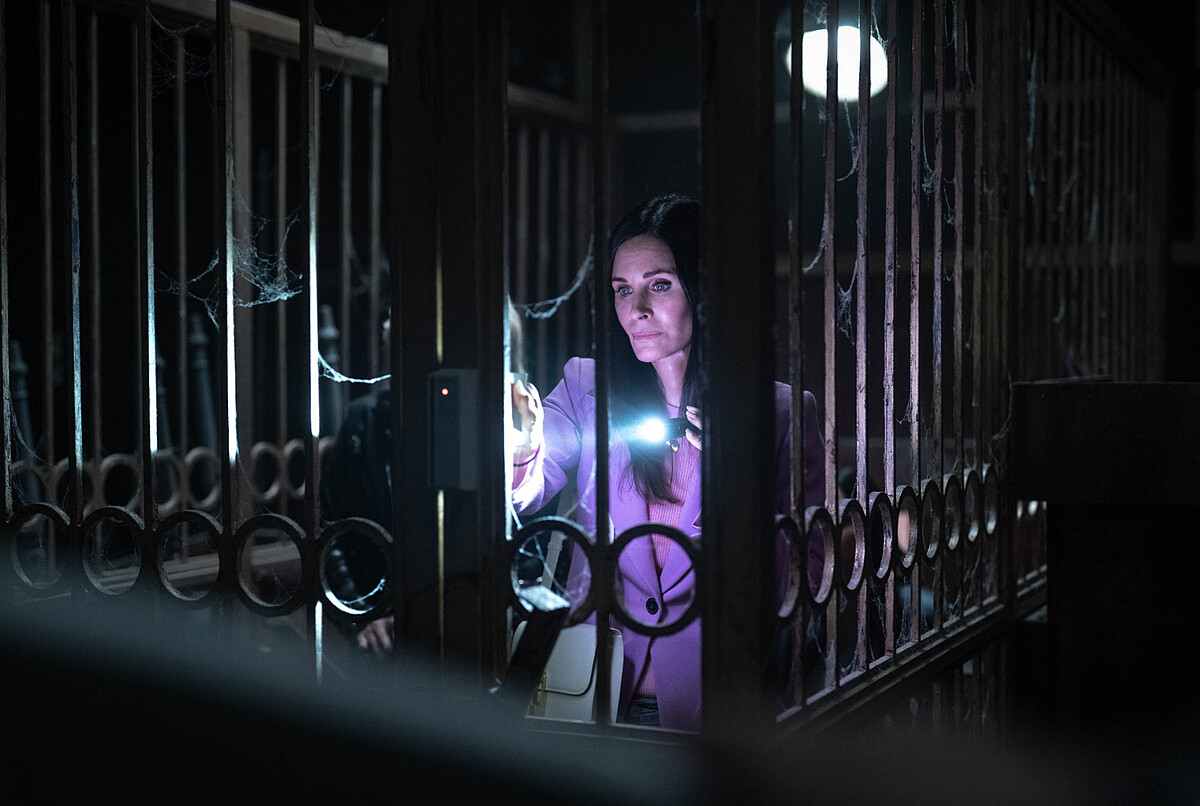 而《驚聲尖叫》系列經典演員寇特妮考克絲飾演的蓋兒魏德斯為了要誘捕鬼臉殺手,一群人想盡辦法要將他引到一座聖殿裡面,殊不知鬼臉殺手已經鎖定她正一步步逼近中。
