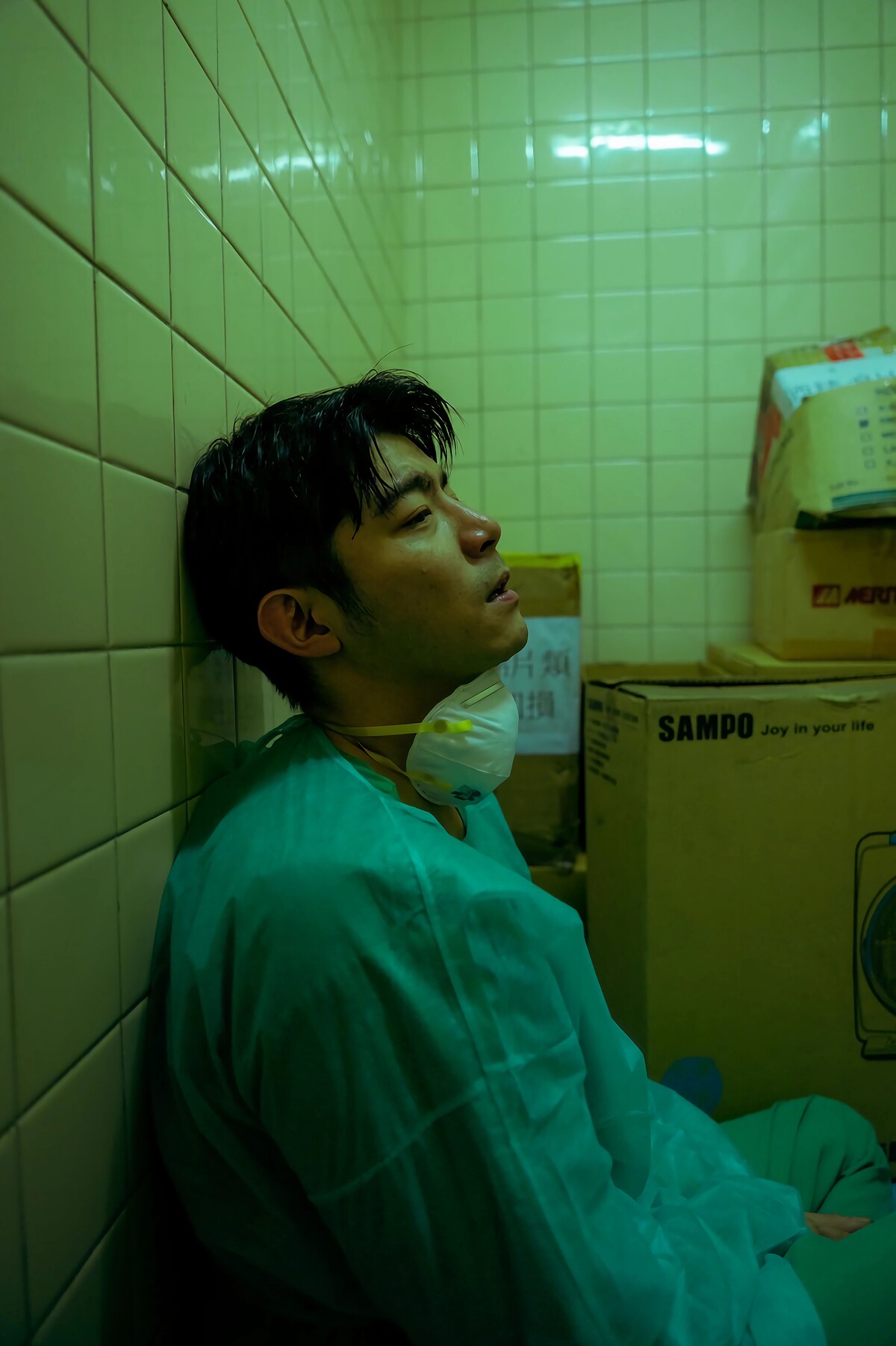 而在曝光的《疫起》雙男主角前導海報,畫面彷彿被壟罩在一層防護罩中,隔著充滿霧氣的表面,穿著防護衣的男主角王柏傑,透過文案「我也是人,可不可以不勇敢?」暗示身為醫生的他,也會有脆弱的一面。