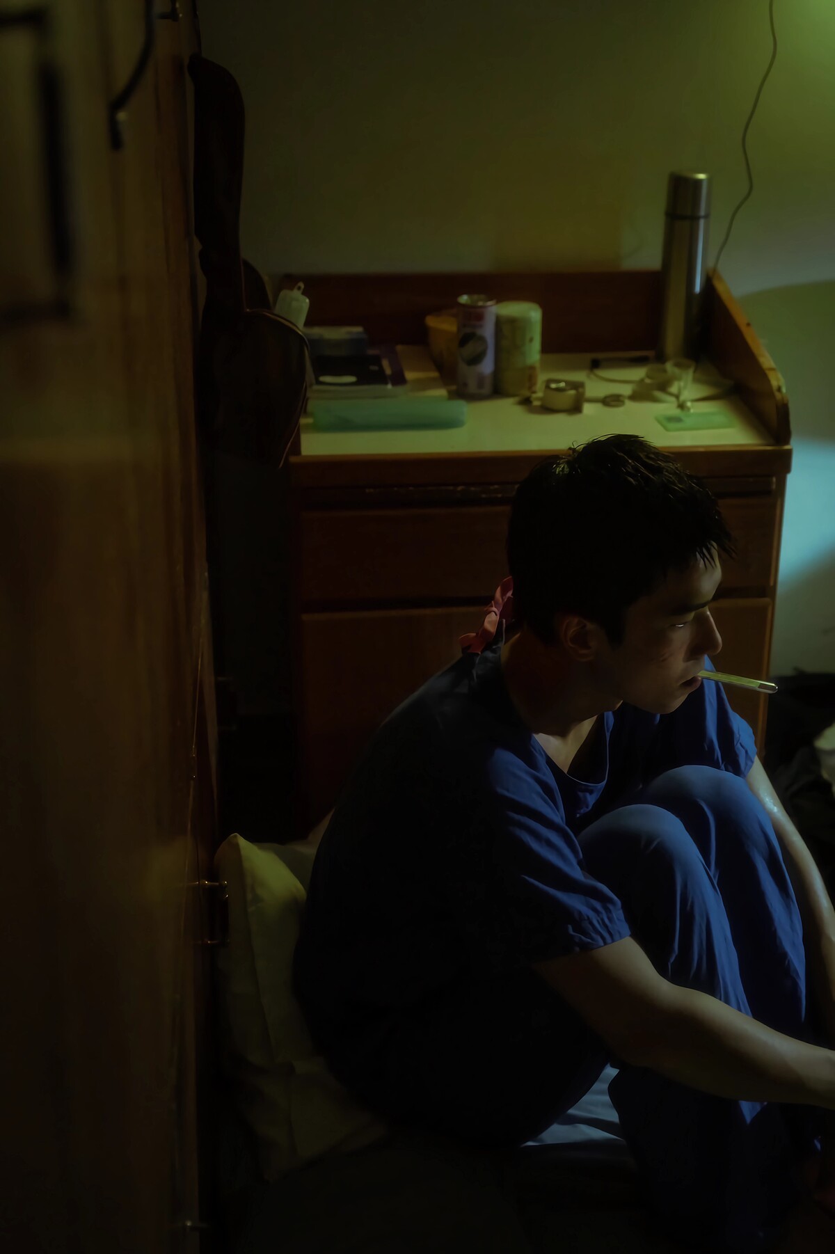 林君陽導演也分享《疫起》印象最深刻的一場戲,是由曾敬驊與項婕如飾演的醫護情侶在封院之下只能在醫院屋頂隔空為彼此喊話的情節,導演透露這場戲的插曲:「我原本的設定是要捕捉清晨五點天亮前藍色的光線,這場戲必須耗費三個清晨拍攝,就在第一天拍攝時下了一場大雨,這場雨給我們一個非常強烈的暗示,就在那一句婕如該哭的同時下起傾盆大雨,把兩位演員淋溼,我沒喊卡,兩位演員也沒停,我們就這樣把戲拍完了,在那個當下我就知道,這場戲就應該要是這樣呈現!那場雨是上天註定的。」
