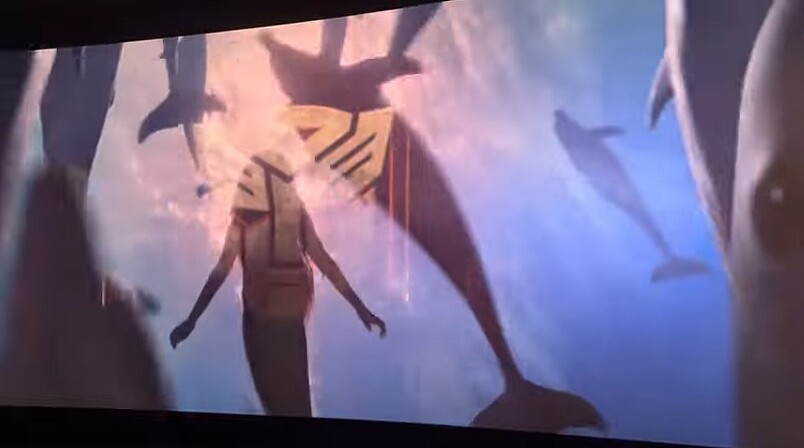 另外一段未映先轟動的小插曲,來自電影院放映片師誤放預告的意外效果,推特網友 @BlackeRobPerry 前往戲院觀賞《星際異攻隊3》,意外拍到戲院誤將《小美人魚》和《變形金剛:萬獸崛起》預告片同時放映,疊影出海底與陸地世界意外吻合,背景音還收到觀眾拍手叫好,還有人說這是史上最好看的電影預告了!