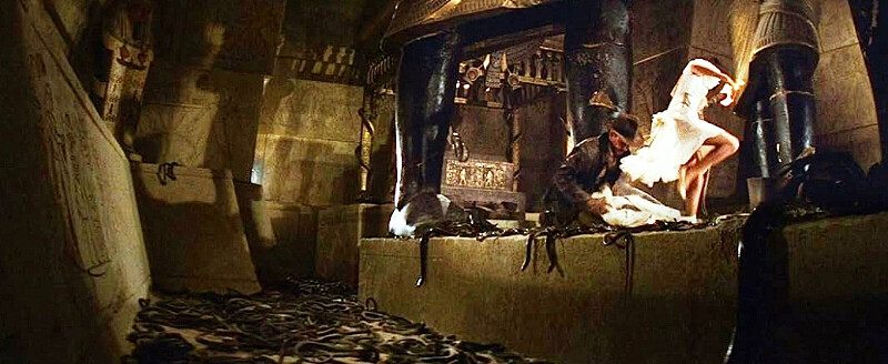 印第安那瓊斯系列的冒險情境,總是圍繞在幽魂、骷髏、烈火沙塵暴災難等,以及經典讓人一看就頭皮發麻的蛇蠍爬蟲場景,而且一言不合就是巨量出場。拍攝《法櫃奇兵》為求真實,團隊真的從三個蛇類繁殖場,找來真蛇。