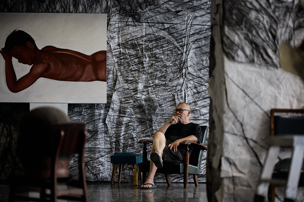 蔡明亮說:「《日子》是我在2020年完成的電影,入圍當年柏林影展主競賽,不久疫情就來了,主角之一的亞儂被困在他的家鄉,寮國的農村兩年,這兩年我非常想念他,於是拿起畫筆開始畫他;期間,小康也常出遠門拍戲,我也畫小康,就著《日子》的劇照和工作照,我仿彿在畫布上再拍了一遍《日子》。」
