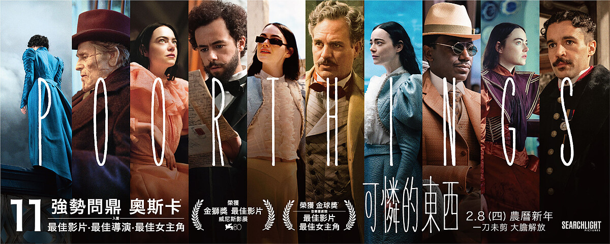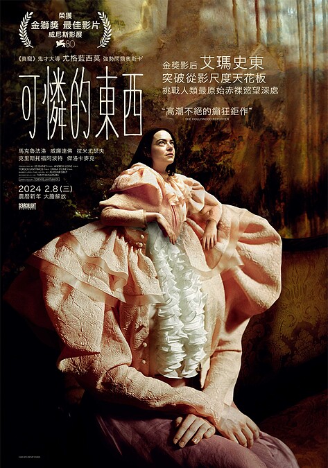 電影《可憐的東西》(Poor Things)由《樂來越愛你》金獎影后艾瑪史東主演,這次她為戲犧牲大膽全裸入鏡,更被譽為個人從影以來最佳演出!先前在威尼斯影展世界首映即獲得一致盛讚,並勇奪最佳影片金獅獎,金馬影展放映後亦口碑沸騰、在觀眾票選榜上名列前茅,更已被視為2024奧斯卡獎季大熱門!