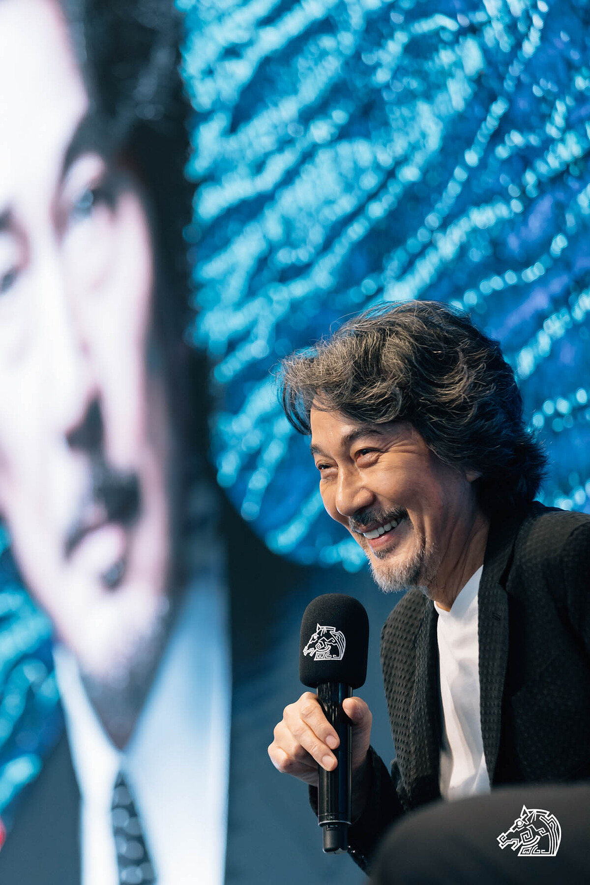 同為本屆金馬影展「焦點影人」的役所廣司,影展也選映他今年於坎城影展封帝的《我的完美日常》和《失樂園》等7部代表作,讓影迷見證他的銀幕魅力和精湛演技。他打趣說:「雖然很想進戲院看,但還是沒有勇氣面對年輕的自己。」雖然他生涯已獲得日本電影金像獎23次提名,拿下3座最佳男主角、1座男配角,及坎城影展封帝的肯定,他仍謙稱這些成就都是來自幕前幕後所有電影工作團隊的努力。