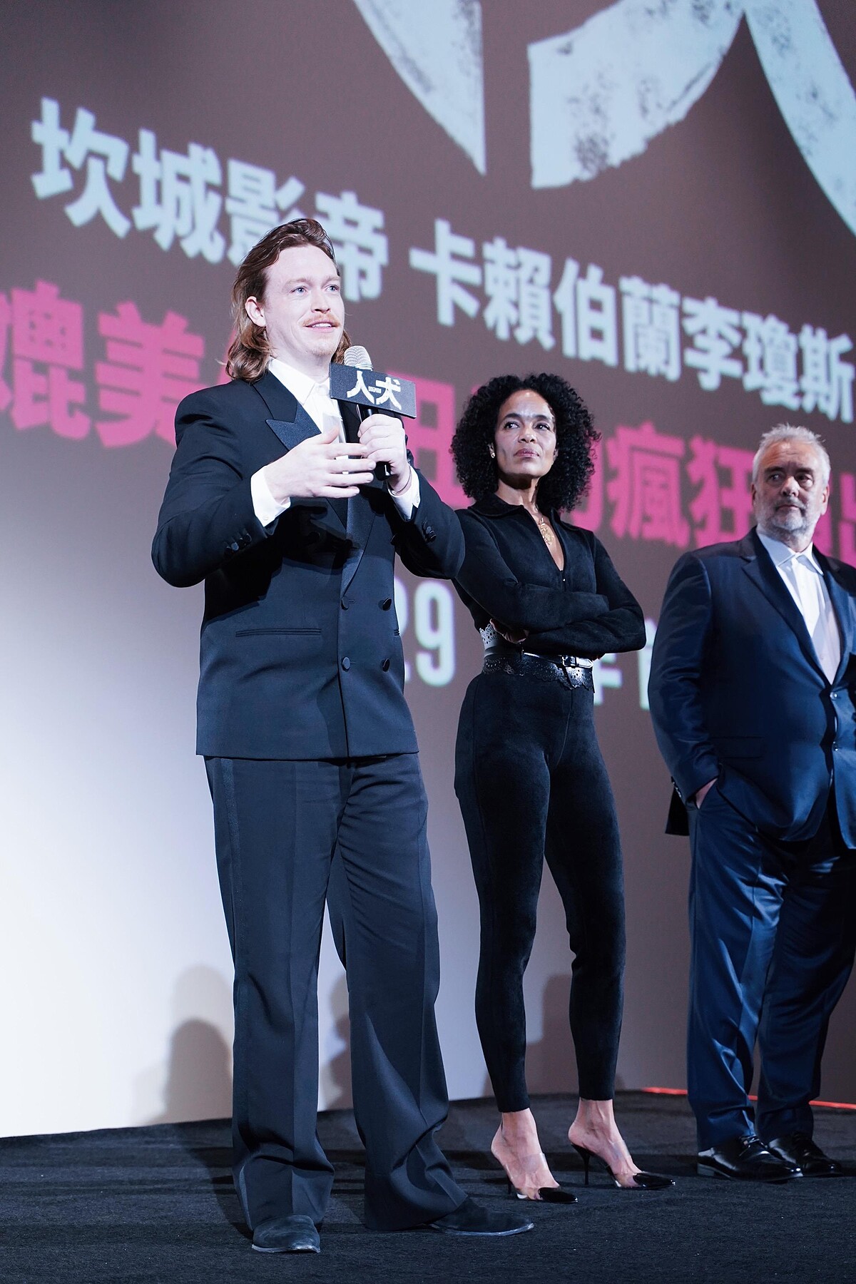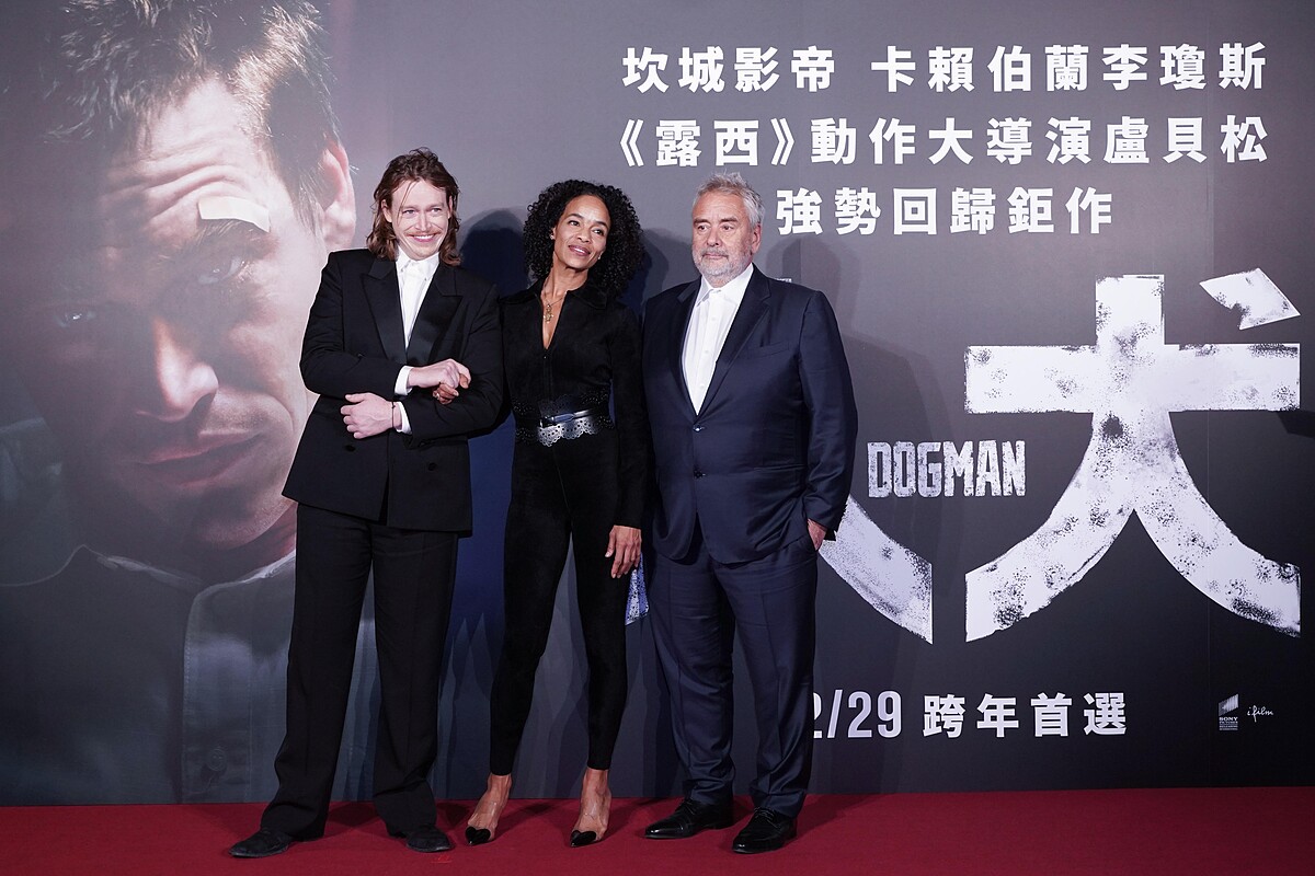 盧貝松也在宣傳最後一天12/18中午與製片維吉妮貝松、男主角卡賴伯蘭李瓊斯出席媒體試片,和全場400多位業內人士交流觀影心得。一出場盧貝松俏皮地說反話:「這部片對我來說很容易拍,快問我問題!」隨即將在《人犬》中表演得精彩絕倫的卡賴伯蘭李瓊斯介紹出場。盧貝松正色道:「我在寫《人犬》劇本時一直在思考人生而為,人是為了什麼存在?我認為人類不是由任何外在標籤所定義,而是奠基於我們選擇做出的行為。」