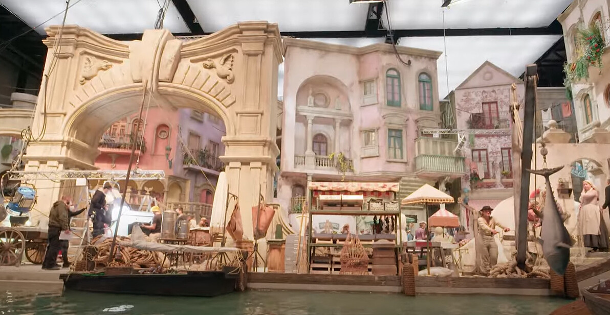 片中的里斯本場景規模甚至是大到彷彿一座微型城市,根據艾瑪史東的敘述,光是要走完片場就要花上半小時,從巨大水箱打造的海濱開始,這個場景也被設定如《綠野仙蹤》的黃磚路一樣,因為這是貝拉第一次踏出倫敦以外的地方,這是她開始對事物產生好奇也打開心房的最重要時期。團隊把這裡設計成迷宮讓貝拉迷路,所有店鋪和閣樓都是真實的空間,每個磚塊都單獨上色,就算看不到的地方也都是滿滿細節。