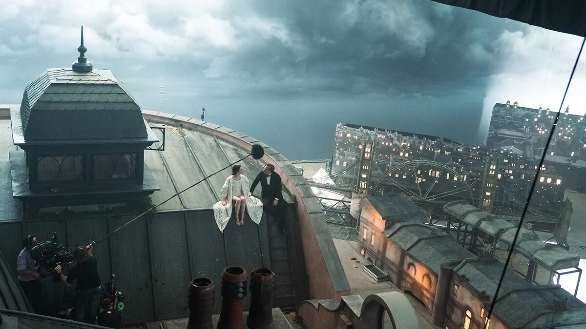 回到電影之中,所有場景絕美又充滿獨特性,導演尤格·藍西莫希望這部電影有著 1930 年代片場電影的質感,從科學家的宅邸到探索倫敦、里斯本、巴黎的解放之旅,每一座城市都有獨特的色調和氛圍,而這也是幕後團隊的心血,他們真的在匈牙利布達佩斯的攝影棚裡打造了這些城市場景。全片幾乎都是在搭建出的舞台拍攝,僅有極少數為真實場景。