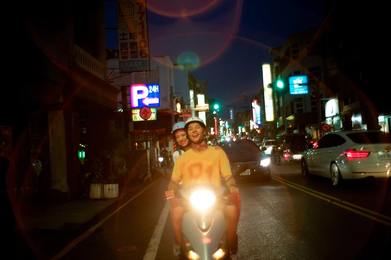 電影《青春18x2 通往有你的旅程》的故事畫面裡,導演藤井道人在充滿日式純愛的風格中,也加入台灣相當有特色的摩托車文化。片中男主角許光漢騎車載著女主角清原果耶穿梭台南大街小巷,曖昧中的兩人連乘坐姿勢也很講究,不能太親密,也不能太有距離,要呈現出一種剛剛好的甜蜜浪漫感。現實生活中只坐過一次摩托車的清原果耶,坦言原本很緊張,但許光漢讓她超有安全感:「Jimmy(許光漢角色名)真的很溫柔體貼!」