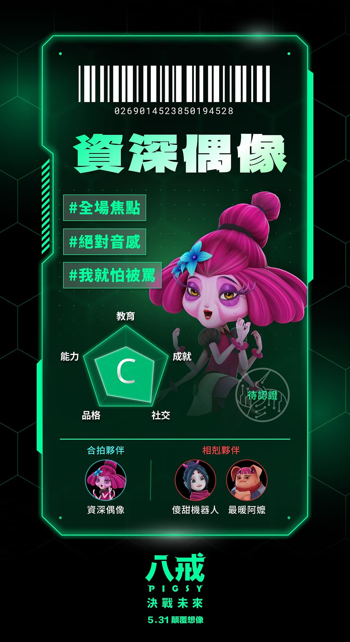 鍾欣凌配音的八戒奶奶,獨自將八戒帶大,是個嗓門大、面惡心善、直來直往的社區意見領袖;雖然總愛嘮叨碎念八戒,卻是最關心他的人,願意犧牲自己的所有,讓八戒完成去新世界的夢想。