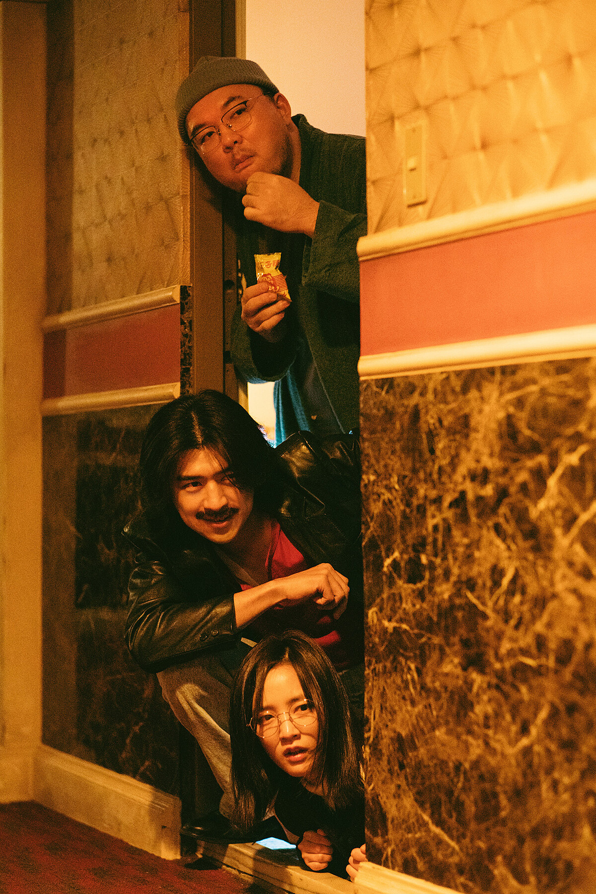 在今年2024台北電影節放映首次公開亮相的「陰間厲鬼團隊」,演員陳柏霖、張榕容、王淨、百白、瘦瘦從劇本階段、前期訓練,一直到正式開拍五個人經常黏在一起,張榕容說:「我們會在現場相處慢慢培養好默契,拍戲到後期真的可以感受到五個人從一開始的生疏、到後面感情變好。」作為團隊的中心,飾演厲鬼經紀人 Makoto 的陳柏霖坦言壓力很大:「現場不只要接住對手演員的反應及表演,還要顧好自己的節奏配上動作,拍子要很精準,雖然會一直NG,但我真的很愛這個可愛又有趣的角色。」