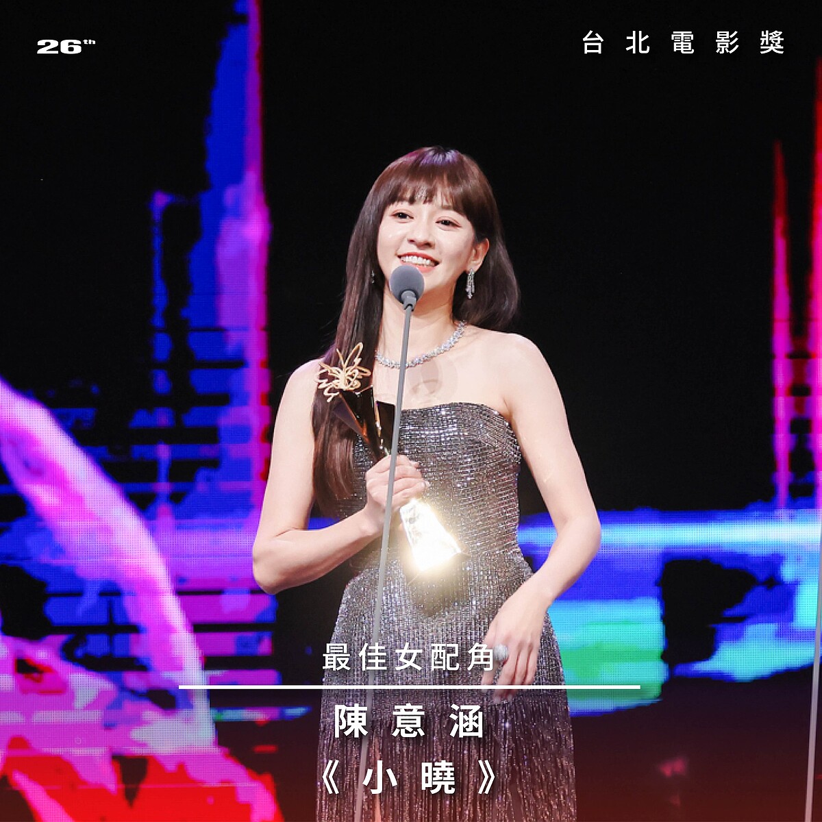 飾演林品彤母親的陳意涵獲頒最佳女配角,她2010年以《聽說》在北影封后,相隔14年又站上北影舞台,她感動說:「《聽說》的時候,我只是一個什麼都不懂的小女生。14年後,我是兩個孩子的媽媽,進入了家庭,演了不一樣的類型,謝謝台北電影節在我人生需要幫助的時候,給我很大的支持。」
