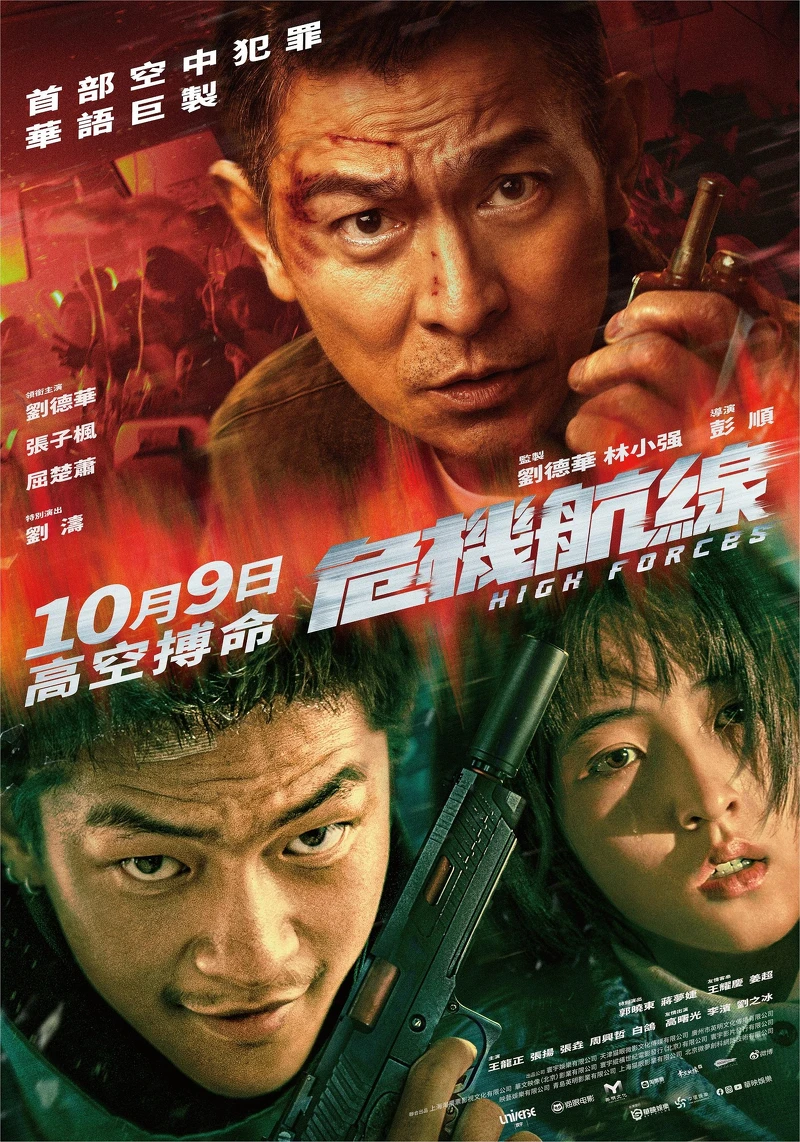 電影海報上也刻劃出三名主要角色的心理爭扎,劉德華眉頭深鎖,神色凝重,臉頰留有傷痕,眼神堅定如山,表現出捍衛客機安全的勇氣和決心!而張子楓首演盲女角色,海報上一滴淚奪眶而出讓人心痛;而屈楚蕭首次挑戰的反派表現狂妄自大,三人的關係揭開後更讓人充滿期待。