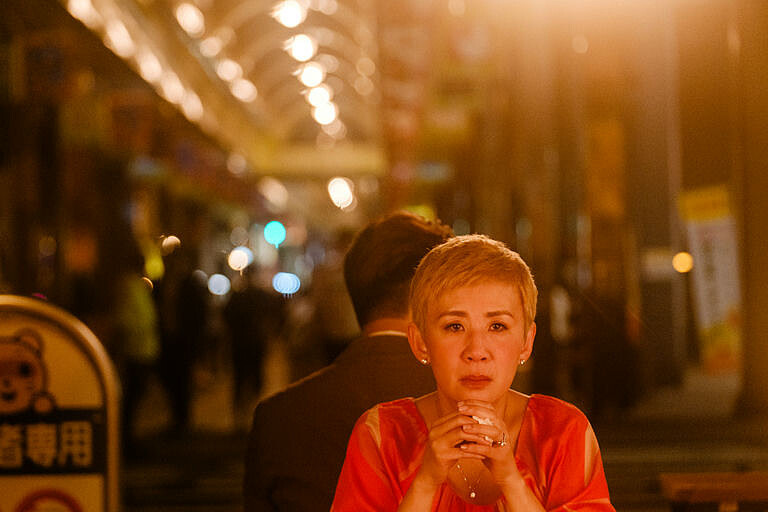一是在札幌的小餐廳裡,余笑琴和少年背對背坐著,假的身分在手機互傳訊息,真人的身分卻是背對背坐著,當余笑琴有感而發流著淚,少年貼心背著遞給對方衛生紙。