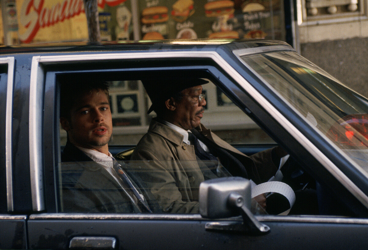 《火線追緝令》描述一位即將退休的資深警探(摩根費里曼 飾)與一位剛入行的菜鳥警探(布萊德彼特 飾),聯手追捕一名以聖經七宗罪為殺人動機的連環殺手。兩位主角雖性格迥異,卻在共同追捕罪犯的過程中建立深厚情誼。