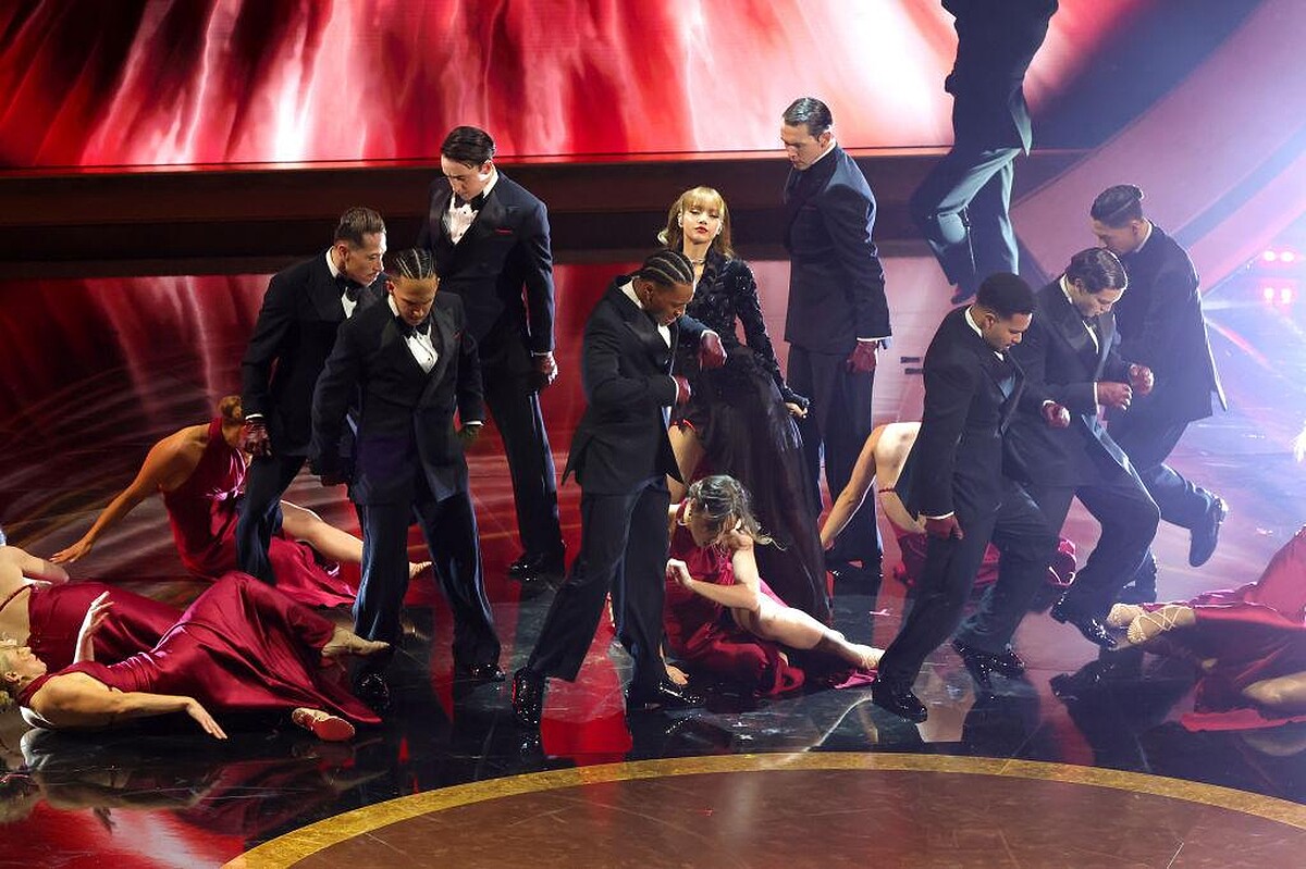 奧斯卡頒獎典禮向來不只是頒獎這麼簡單,今年的表演環節更是星光閃耀,驚喜不斷!典禮以《魔法壞女巫》主演亞莉安娜(Ariana Grande)與辛西婭艾利沃(Cynthia Erivo)的雙人演出揭開序幕。兩人共同向近年來飽受野火肆虐的洛杉磯致敬,舞台瀰漫著灰煙,亞莉安娜身穿紅寶石色禮服緩緩現身,深情詮釋經典名曲〈Over the Rainbow〉,將全場氣氛推向夢幻氛圍。隨後辛西婭艾利沃接棒演唱《新綠野仙蹤》的主題曲〈Home〉,展現極具爆發力的嗓音。從後台到舞台前,兩人深情對視,緊握彼此的手,展現出超越舞台的深厚默契,為典禮帶來動人開場。
