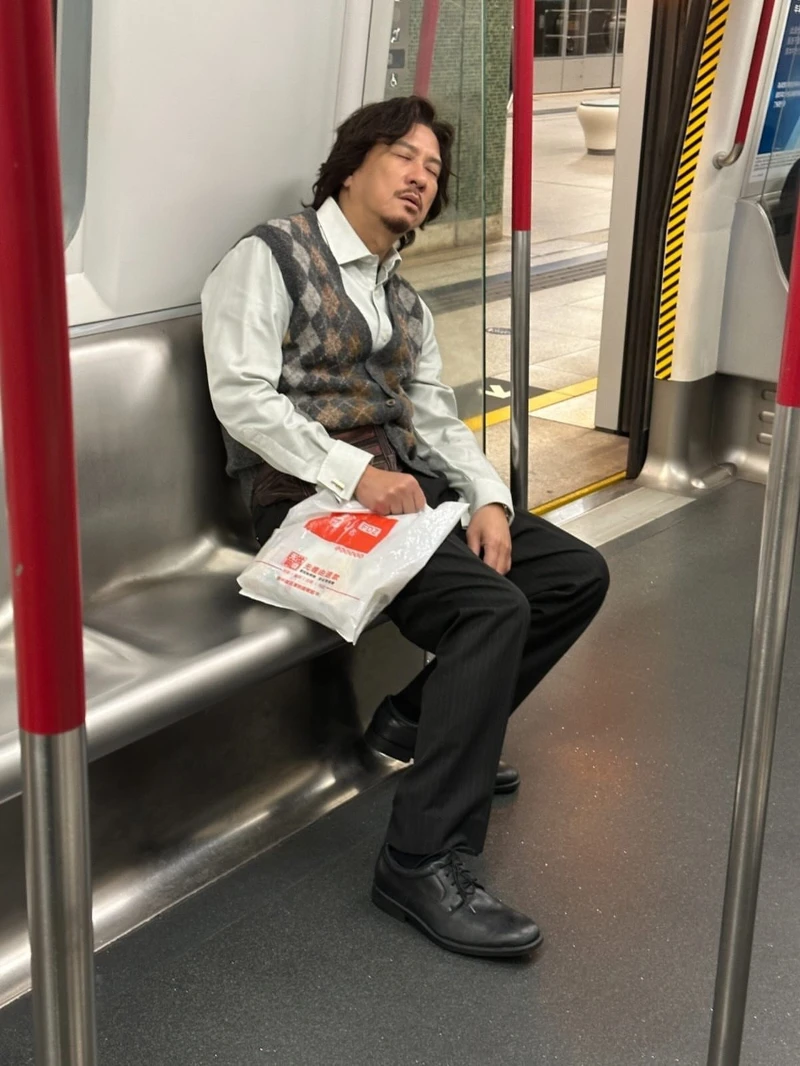 此外,張家輝甚至打扮成「蔡辛強」的模樣在地鐵上累到睡過頭,被網友偷拍,網友還訝異直呼:「朋友搭地鐵碰見張家輝!?真的假的啦?」但因為造型較為落魄,不少人無法斷定,反倒引起一波熱烈討論。隨後「蔡辛強」再度現身親回留言串揭曉答案,以無奈口氣回應「都已經睡不著了,搭車睡覺還要被人偷拍」,還特地以有氣無力的聲音錄製留言:「不好意思,可不可以刪掉啊?影響到我啦。」