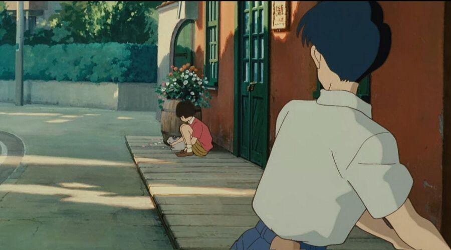 《心之谷》花了大篇幅描繪月島雯的轉變,也正是因為觀眾心中多多少少都住著一個像她這樣的女孩——有時敏感、有時勇敢,總在愛與夢想的道路上,與自己不斷對話。她跟著那隻胖胖的流浪貓漫遊城市、半推半就地在朋友面前唱出自己填詞的歌、用文字構築與貓男爵的奇幻冒險、在與父母長談後學會理解與釋懷;最後,她坐在聖司腳踏車的後座,像是用盡全力推著彼此的人生往前行。清晨的陽光中,兩人許下愛情的承諾,而她也在那段最後的幾分鐘裡,說出了好幾句質樸又深情的告白,純粹得像一個100%的女孩。