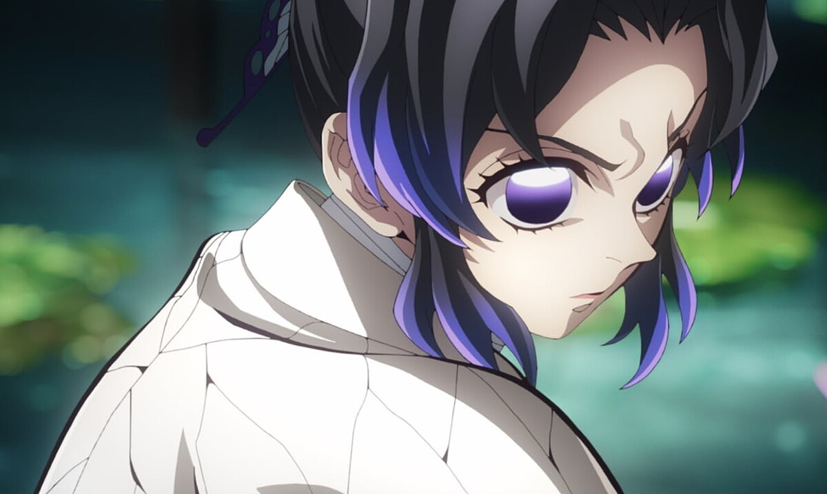 胡蝶忍在劇場版的戰鬥,增加了漫畫沒有的新創招式「蟲之呼吸第五式:虻咬之舞.切裂之誘」,由於童磨的血鬼術一次次分解了毒素,最後忍被勒斷筋骨吸進體內,但胡蝶忍的犧牲,已為之後扳倒童磨做了伏筆。