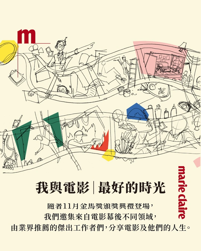 隨著11月金馬獎頒獎典禮登場,我們邀集來自電影幕後不同領域,由業界推薦的傑出工作者們,分享電影及他們的人生。包括電影核心的導演及編劇潘客印,鋪陳畫面的電影攝影師陳克勤、美術設計梁碩麟,一些少見的職業如動作設計洪昰顥、特效化妝儲旭、親密指導林微弋,還有聽覺呈現的電影配樂盧律銘、聲音設計杜均堂。並邀請插畫家顧萱,將這些工作的場景與身影,以流動的畫面形式呈映在我們眼前。