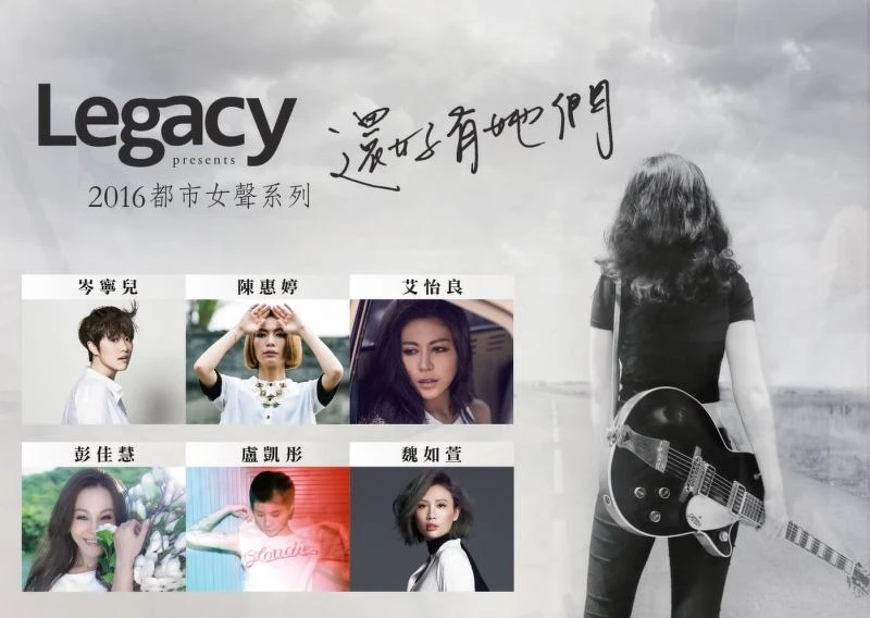 2016年Legacy「都市女聲」系列邀請岑寧兒、陳惠婷、彭佳慧、盧凱彤、魏如萱與艾怡良六名實力派女聲,於Legacy台中、台北兩地舉辦共12場的售票演出。7/9岑寧兒、陳惠婷分別於Legacy台北、台中開唱,為2016 Legacy「都市女聲」系列揭開序幕;岑寧兒7/9台北場將於6/9開賣,陳惠婷7/9台中場則於6/8 開賣。Legacy誠摯邀請樂迷親臨現場,聆聽六名女聲用音樂唱出一首首的人生信號!