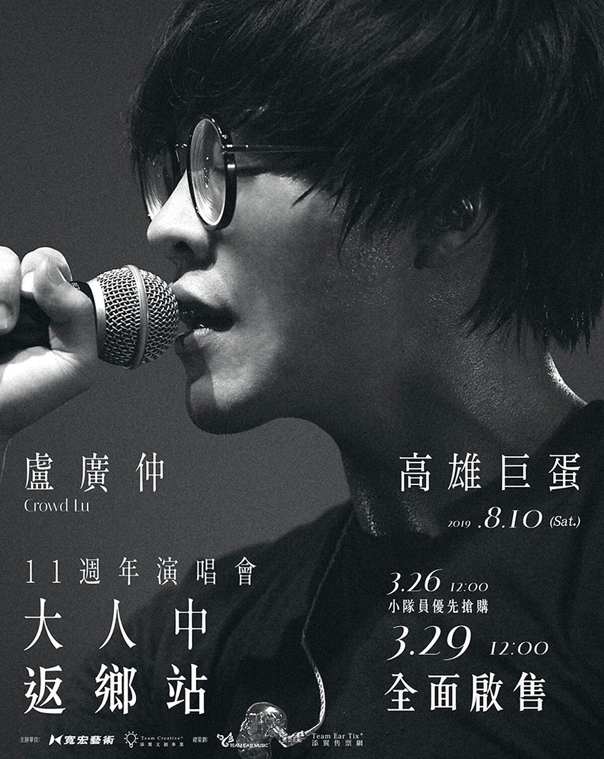 最後即將在4月五度站上台北小巨蛋的盧廣仲,將帶來出道11年的「大人中」演唱會,除了首次挑戰連唱三場的紀錄,睽違三年再次攻蛋,盧廣仲也預告將會帶來不同以往的突破,要歌迷好好期待,還有一件好消息,小隊長即將南下攻蛋啦!「大人中」演唱會8月10日將首次在高雄巨蛋開唱,對於回到熟悉的故鄉開唱,盧廣仲表示別具意義:「雖然我在台南長大,但媽媽是高雄人,是我成長記憶很重要的一環。」