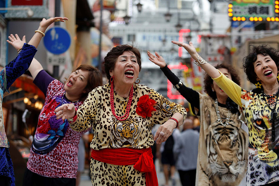 平均年齡超過60歲,來自大阪的「Obachaaan」自2011年出道以來,便獲得了許多關注,經典的捲髮搭上浮誇的花襯衫以及豹紋韻律裝,「Obachaaan」奠定了自己在地區圈的時髦地位,唱唱跳跳的不是演歌,更不是什麼懷舊歌曲,而是下最流行的饒舌音樂,讓人看了心情大好~~~