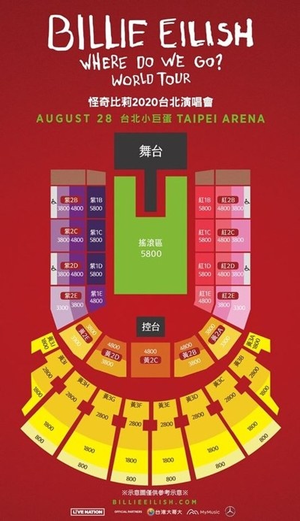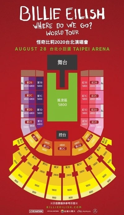 座位區:NT$5800/4800/3800/3300/2800/1800/800(對號入座)