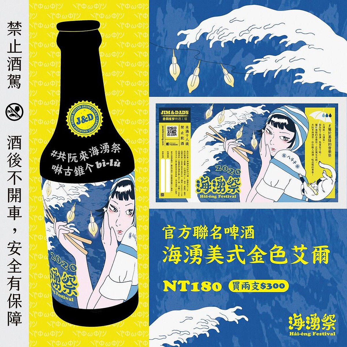 此外也與吉姆老爹攜手合作,推出「海湧祭紀念精釀啤酒」!擁有滑順口感、細膩香氣,會是聽音樂、吹海風的絕佳良伴!一支180元,兩支300元。另外也會有美食市集、在地搖滾酒吧擺攤,在吃飽喝足之際,也把基隆的在地文化繼續傳承下去。